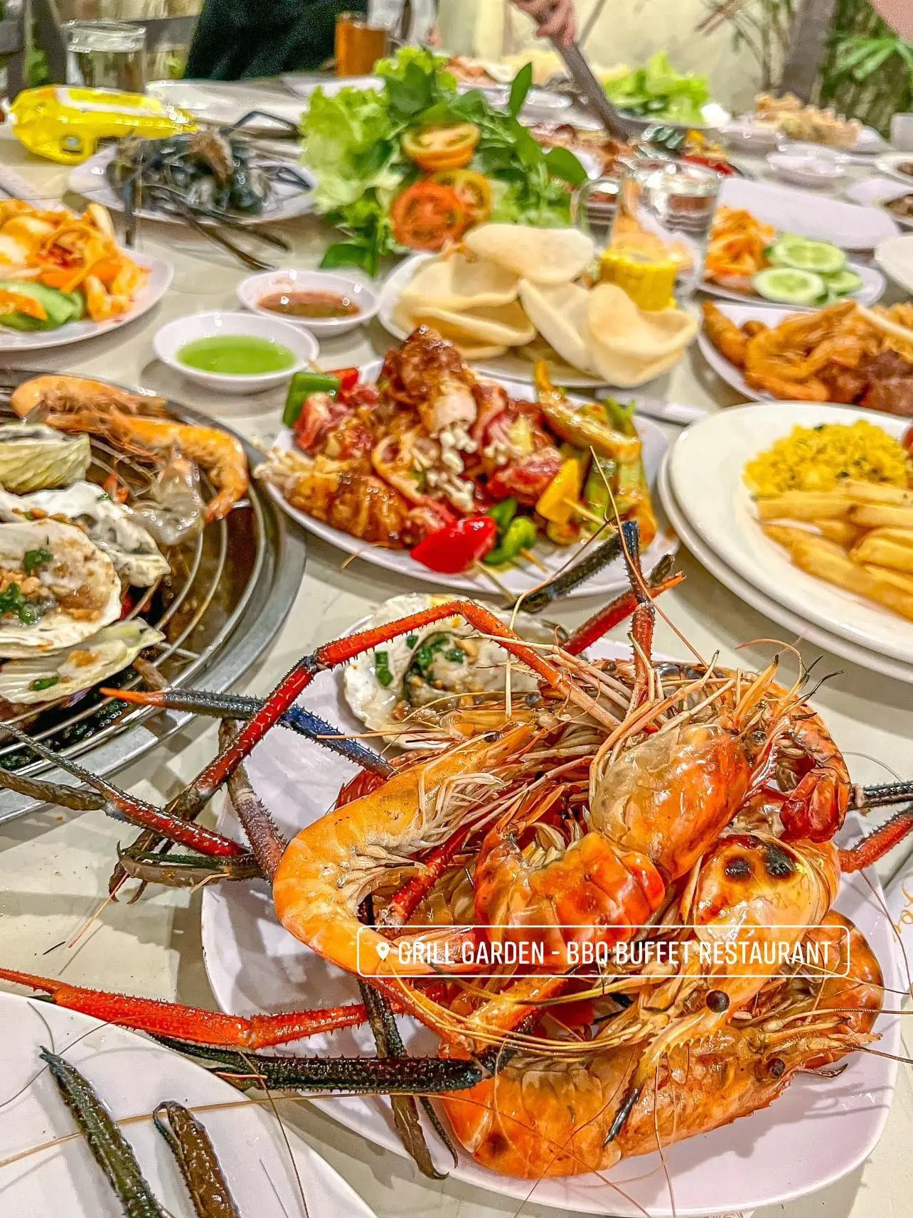 "Thưởng thức Buffet hải sản & BBQ Grill Garden Nha Trang ngay mặt tiền đường biển 86C Trần Phú. Chỉ từ 255k, ăn uống không giới hạn hơn 70 món ngon: tôm hùm, hải sản tươi, thịt nướng và đặc sản Việt. Không gian mát mẻ, phục vụ chuyên nghiệp, được khách quốc tế đánh giá cao. Đặt bàn ngay!"