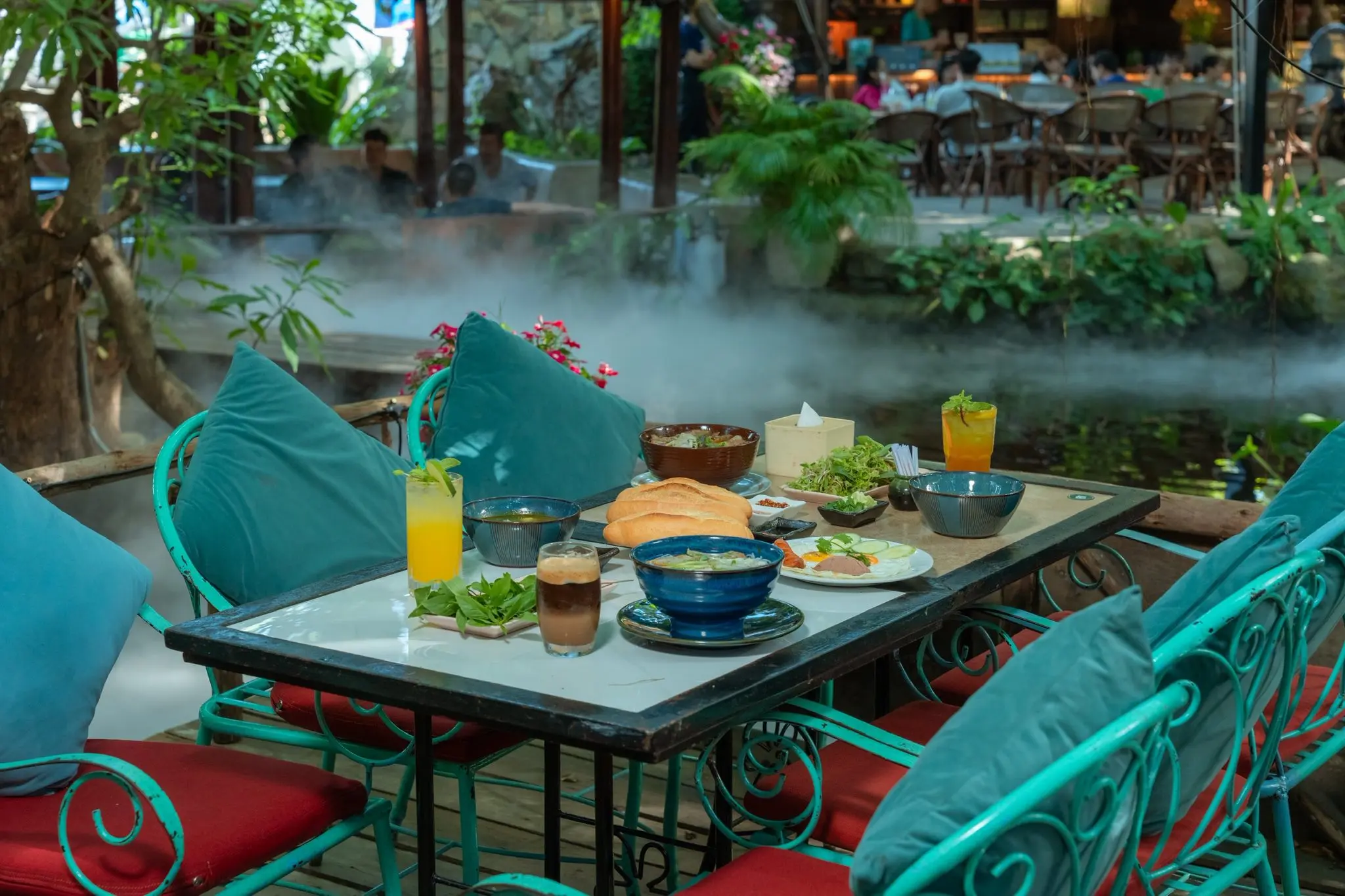 After busy days, there’s nothing better than finding a green corner to return to yourself. At Hoa Dong Noi, everything moves slowly – from the light breeze and bird songs to the sunlight filtering through the leaves.