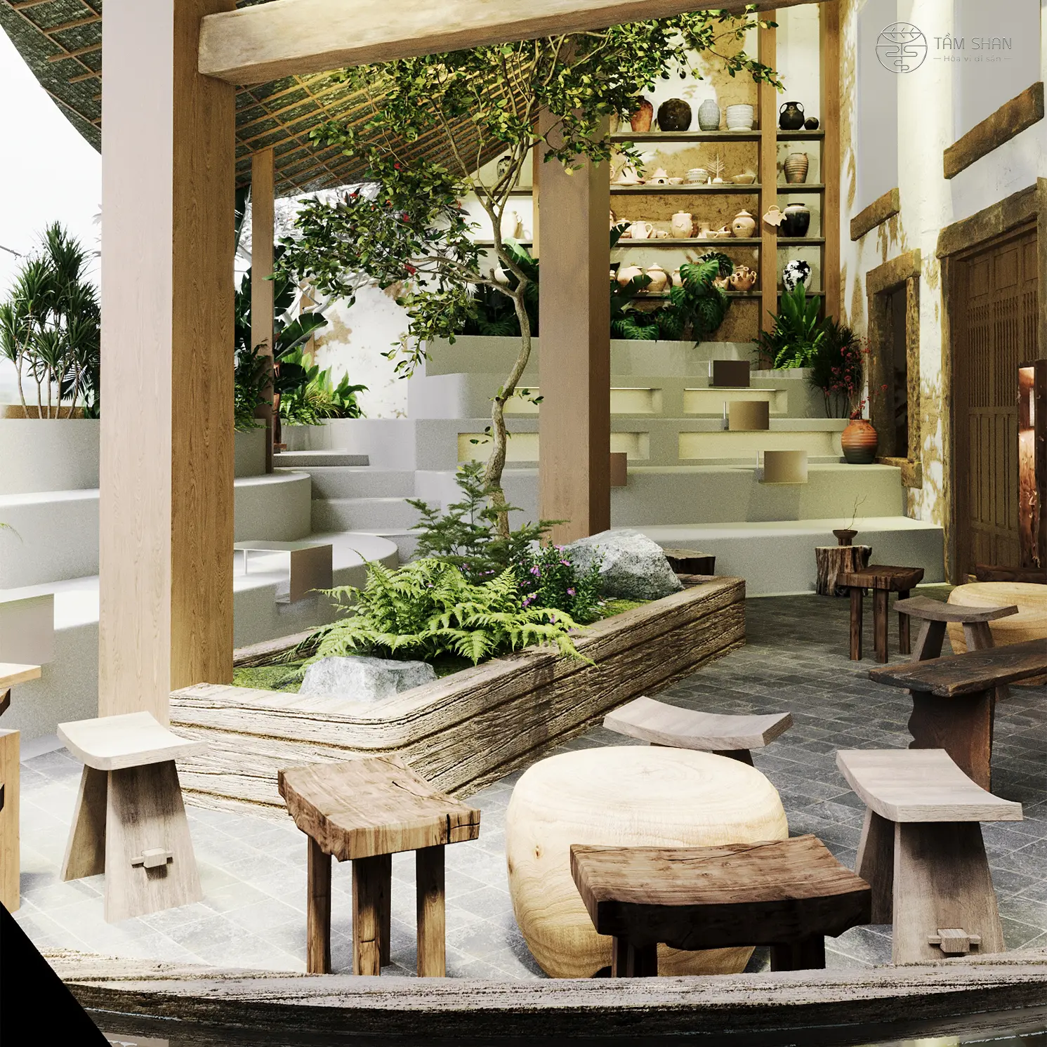 Quán gây ấn tượng với phong cách hiện đại pha chút cổ điển, tông màu đỏ - nâu đặc trưng tạo cảm giác ấm cúng nhưng không kém phần sang trọng: