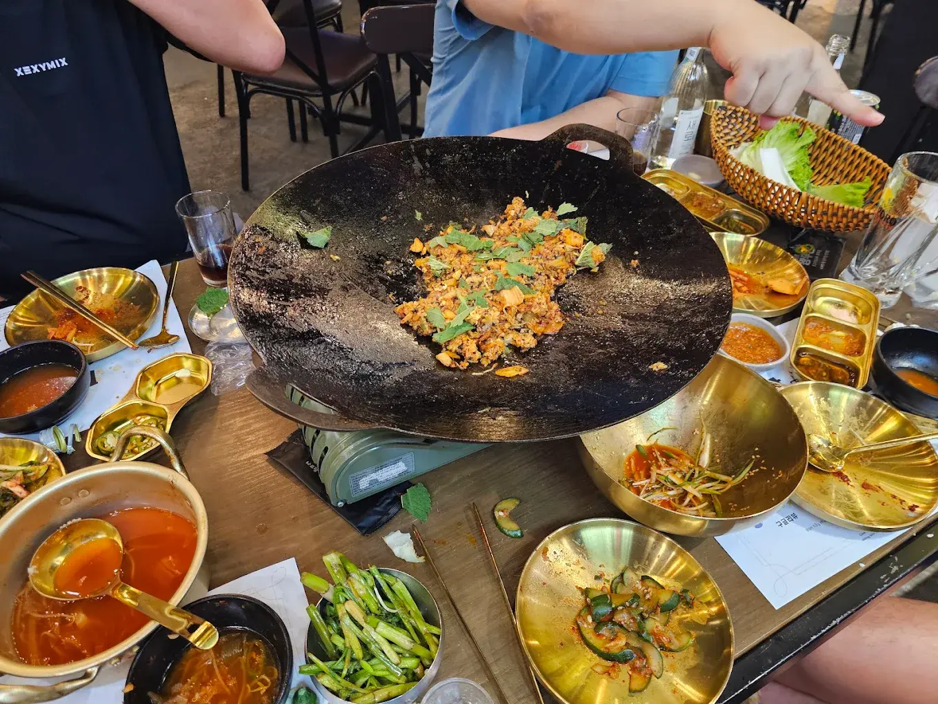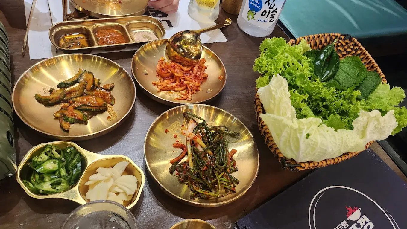 Đến với 왕뚜껑 삼겹살, thực khách không chỉ thưởng thức món ăn mà còn được trải nghiệm văn hóa ẩm thực Hàn Quốc đúng điệu – từ cách nướng thịt, cuốn rau đến thưởng thức rượu soju cùng bạn bè.