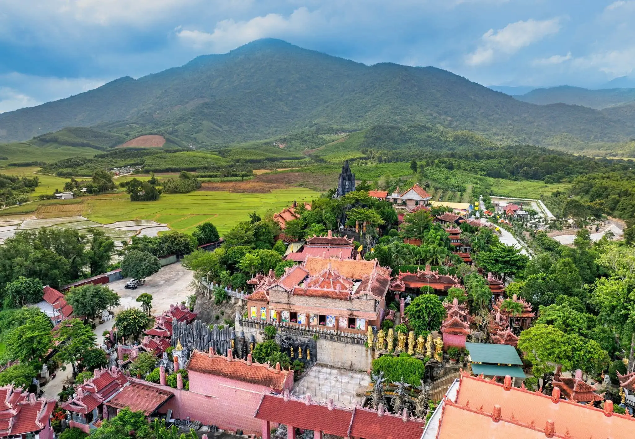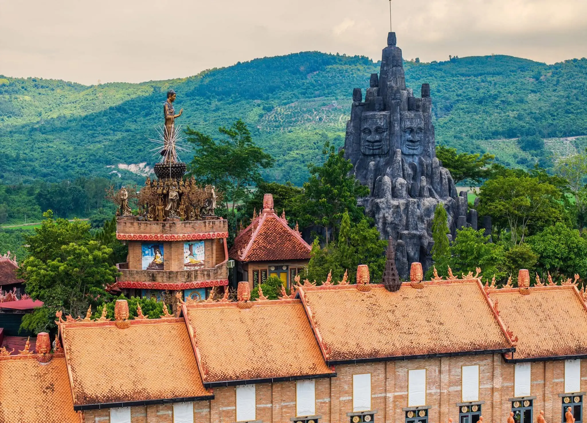 Nếu bạn đã quá quen thuộc với những ngôi chùa mang phong cách truyền thống Việt Nam, thì Pháp Viện Thánh Sơn tại Diên Khánh, Khánh Hòa sẽ mang đến một làn gió hoàn toàn mới. Nơi đây không chỉ là chốn tu tập trang nghiêm mà còn là một công trình nghệ thuật độc đáo, hòa quyện giữa vẻ đẹp tâm linh và thiên nhiên hùng vĩ.
