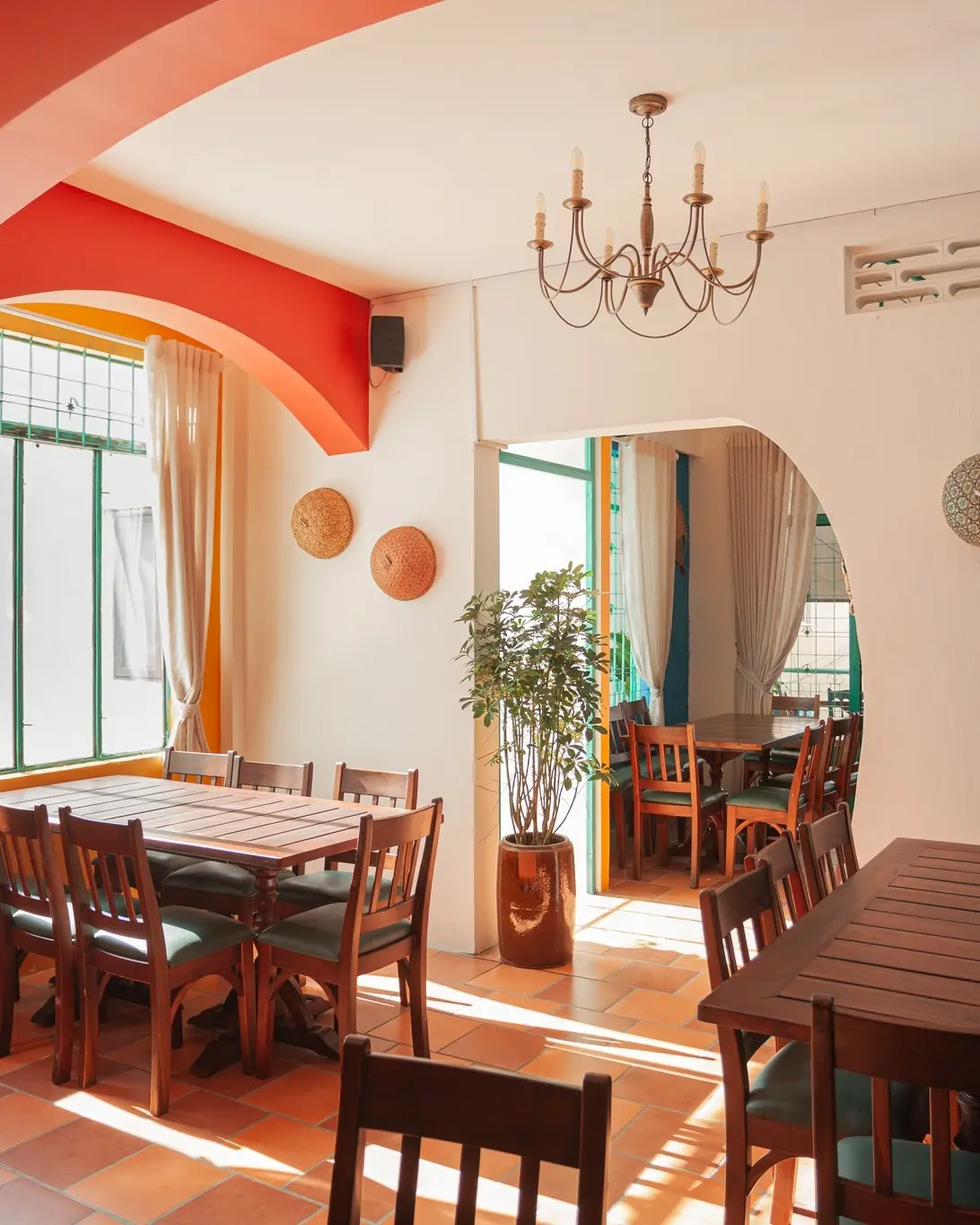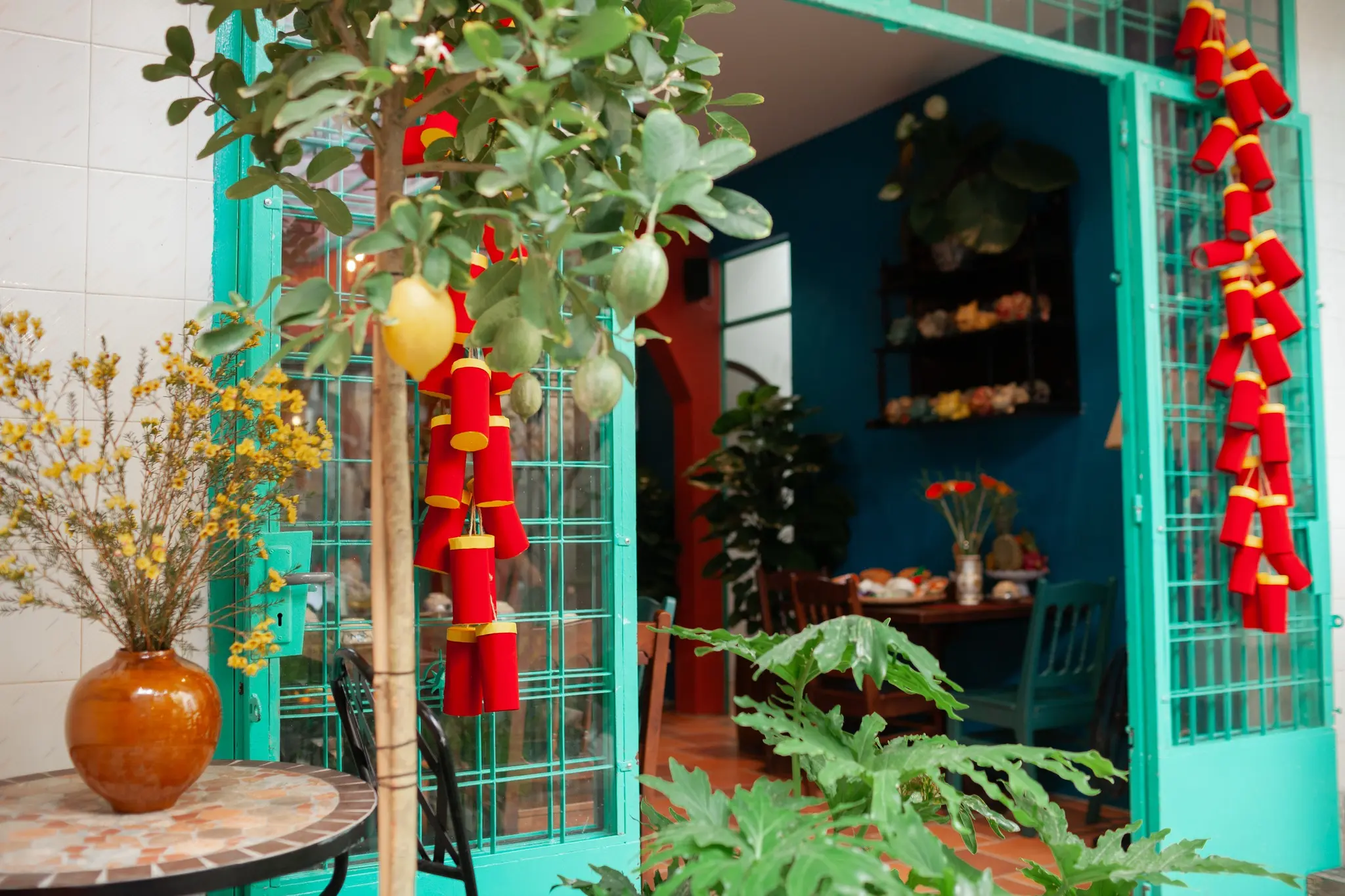 质朴的红砖墙搭配上个世纪标志性的青色百叶窗,宛如一台“时光机”,带你回到无忧无虑的童年时光。飘扬的国旗与红灯笼,勾勒出一个既温馨又富有越南文化底蕴的空间。